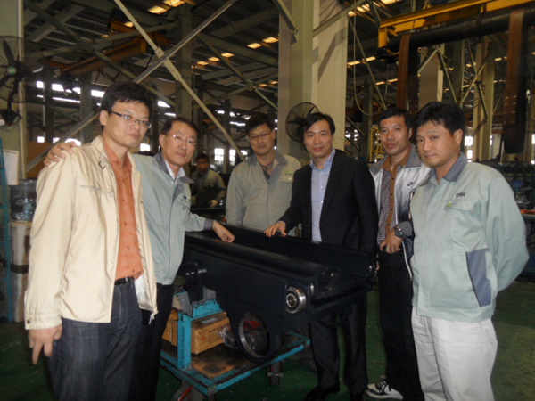 2013年11月6日,中天公司總經(jīng)理受邀參加青島克拉克物流機(jī)械有限公司叉車(chē)主缸交付裝配儀式,并與青島克拉克總經(jīng)理郭利鎬先生在生產(chǎn)現(xiàn)場(chǎng)合影留念。